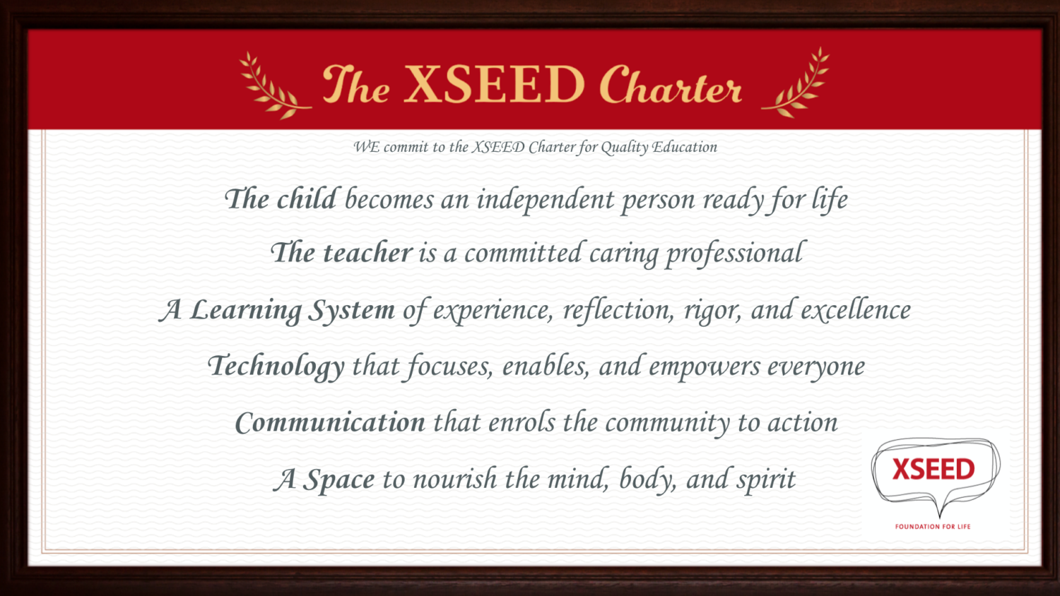 The XSEED Charter commits to SIX fundamental principles of quality elementary education: